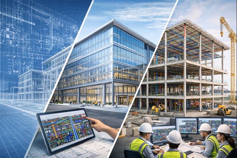 Our team develops initial design concepts while establishing early coordination between architectural, structural, and MEP disciplines.